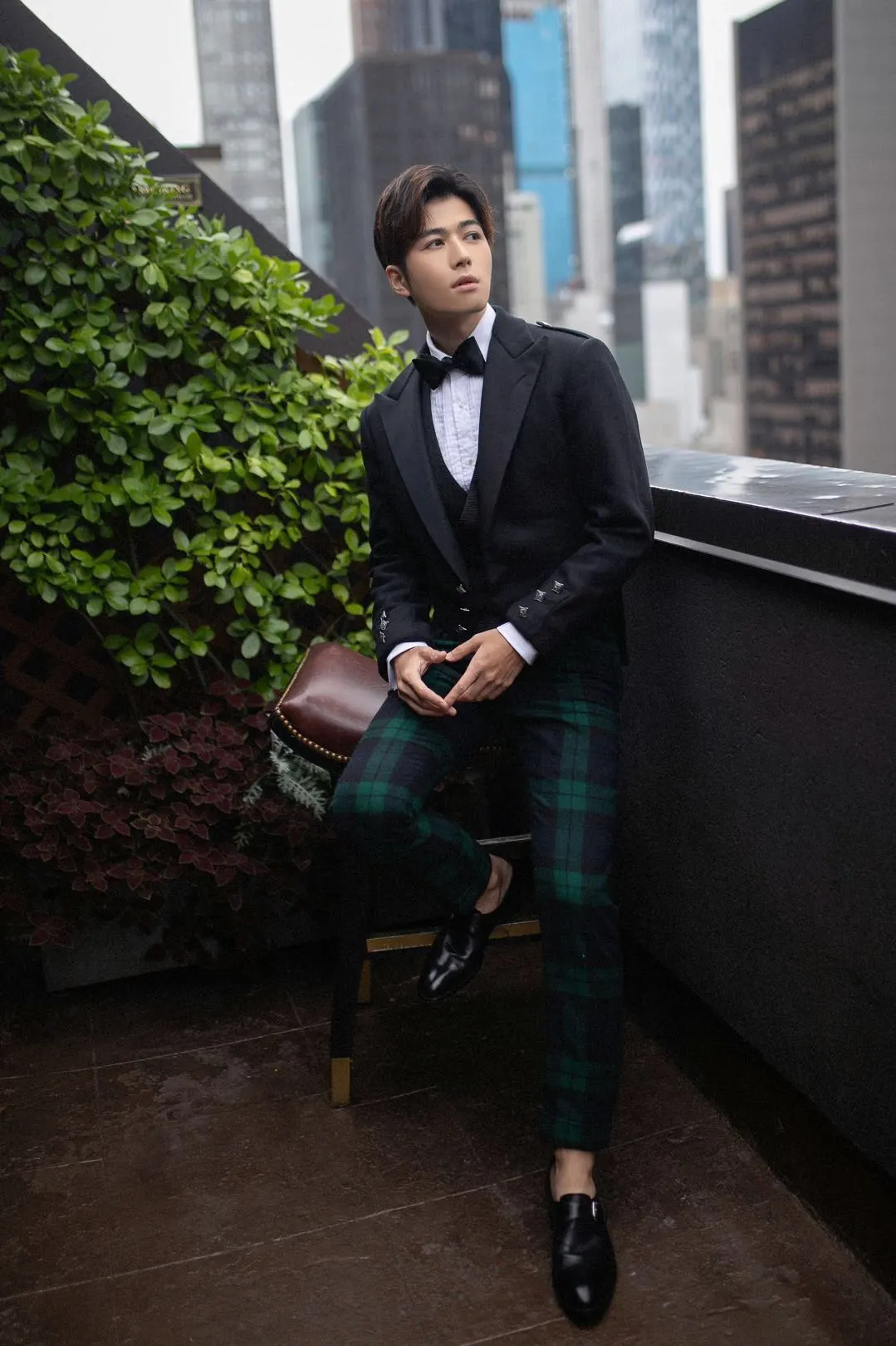 Star connection September 10 Cheney Chen Show at New York fashion week at the invitation of the brand. In a group of photos that have come to light recently,Cheney Chenis wearing a short black dress of Ralphlauren and classic green plaid trousers. Besides, there is a little romance outside the gentleman. The collision with the landscape of modern buildings in New York produces a subtle aesthetic of classical and modern integration.